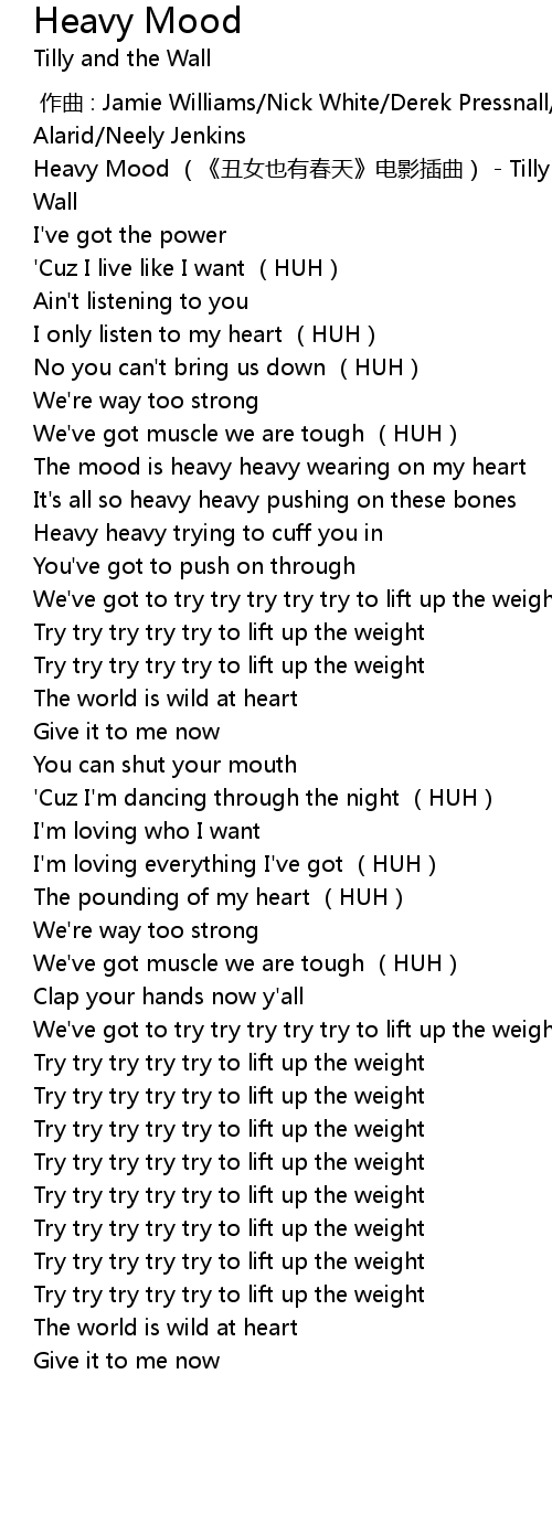 | [00:56.49] | The mood is heavy heavy wearing on my heart |