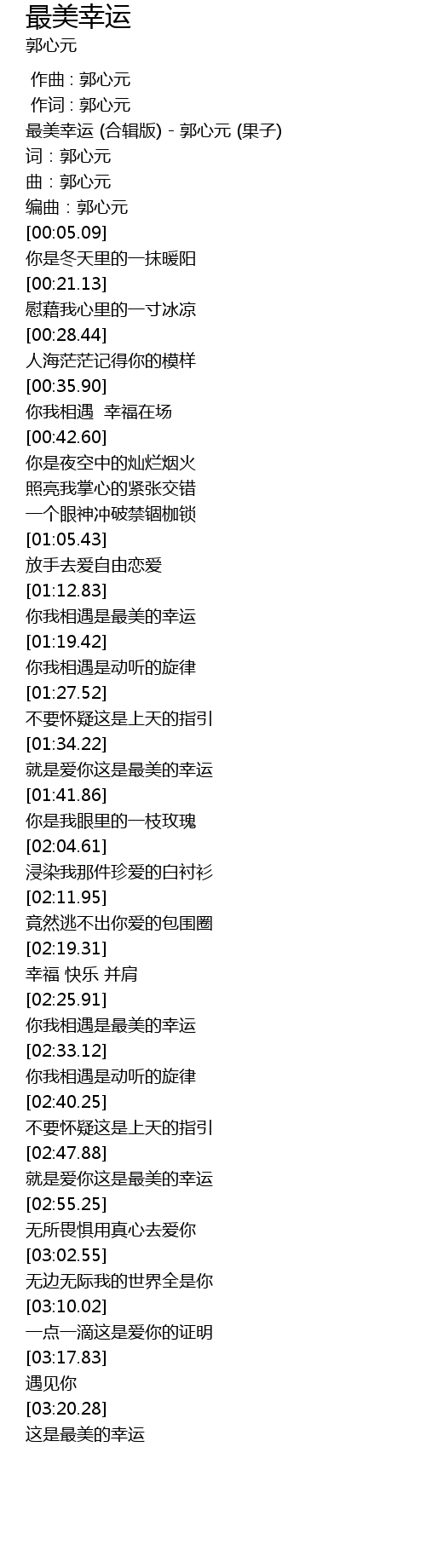 | [00:00.09] | 最美幸运 (合辑版) - 郭心元 (果子) |