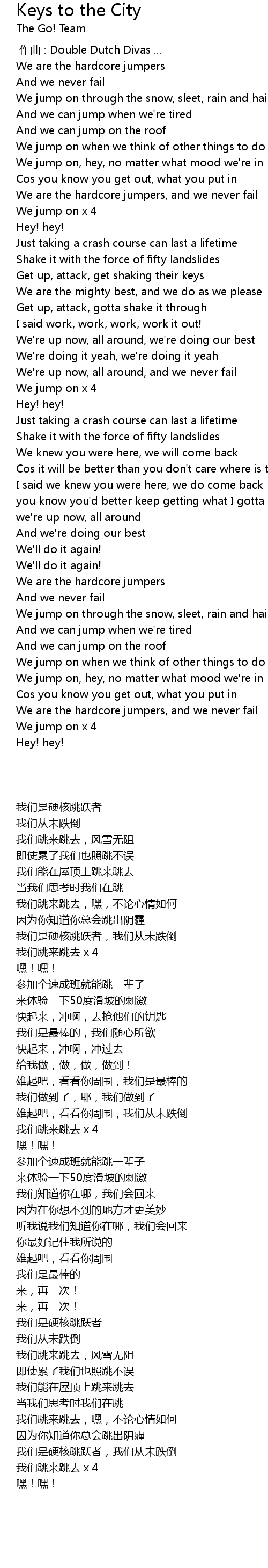 | [02:51.43] | We are the hardcore jumpers, and we never fail |