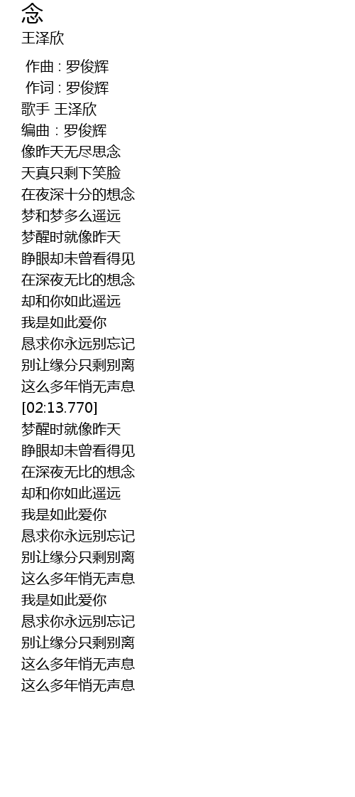 | [02:55.013] | 恳求你永远别忘记 |
