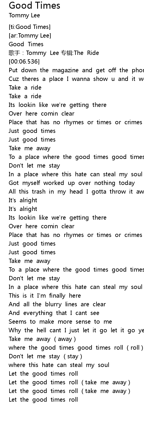 | [00:03.61] | gē shǒu: Tommy Lee zhuān jí: The Ride |