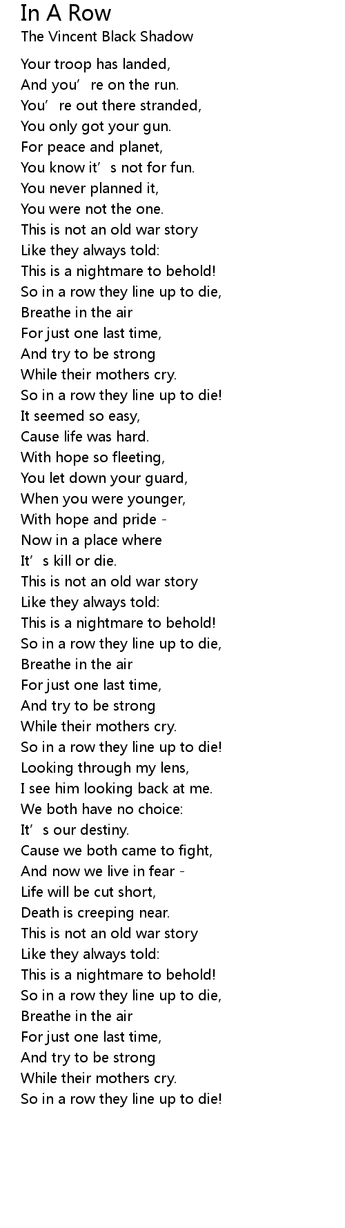 | So in a row they line up to die, | |