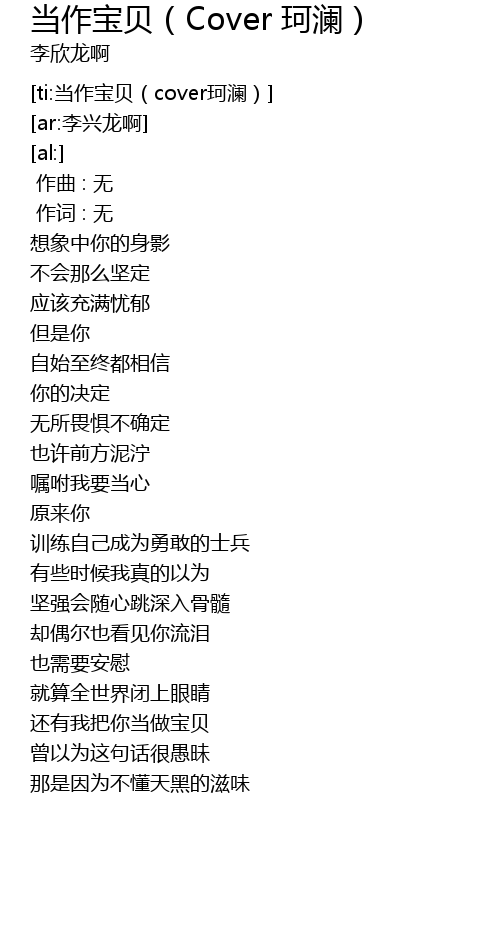 | ti: dàng zuò bǎo bèi cover kē lán | |