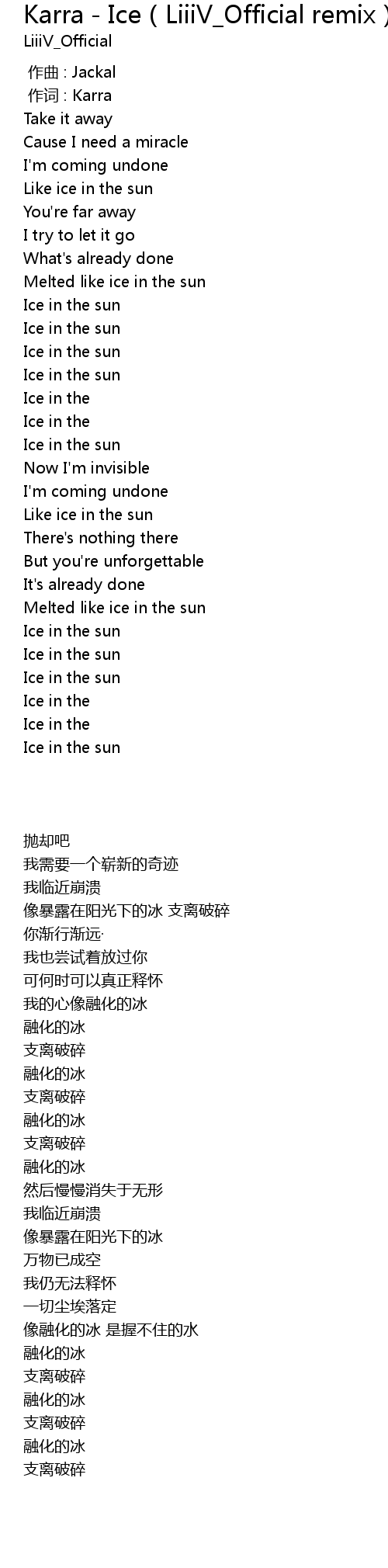 | [00:50.03] | Ice in the sun |
