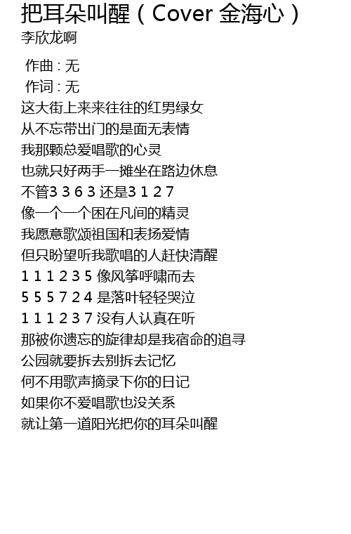 | [00:35.210] | 1 1 1 2 3 5 像风筝呼啸而去 |