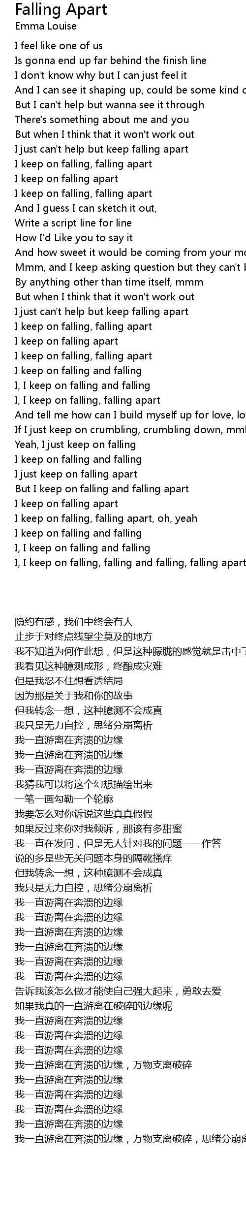 But I keep on falling and falling apart |