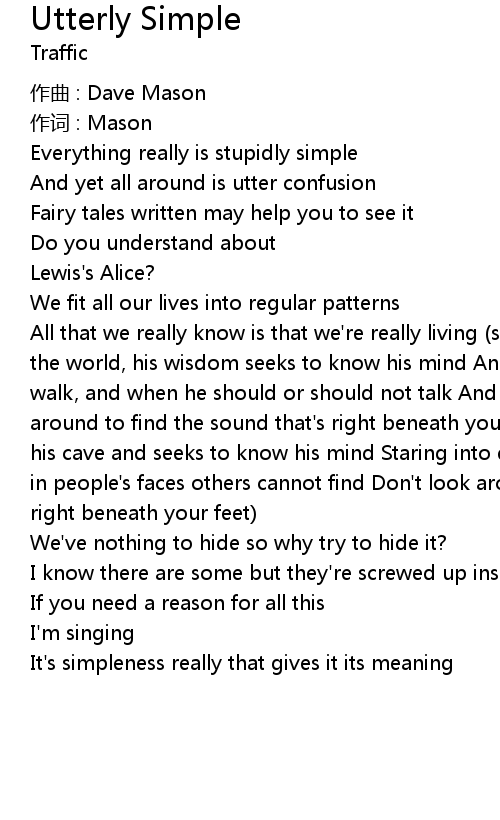 | All that we really know is that we' re really living spoken: The man that seeks the world, his wisdom seeks to know his mind And knowing where his feet should walk, and when he should or should not talk And have a friend to find Don' t look around to find the sound that' s right beneath your feet The hermit sits inside his cave and seeks to know his mind Staring into empty space and seeing things in people' s faces others cannot find Don' t look around to find the sound that' s right beneath your feet | |