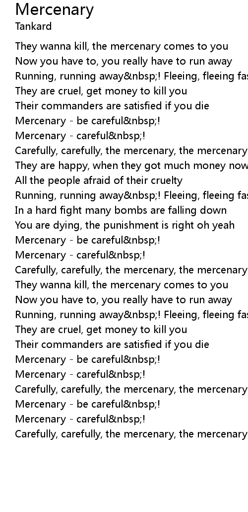 Carefully, carefully, the mercenary, the mercenary |