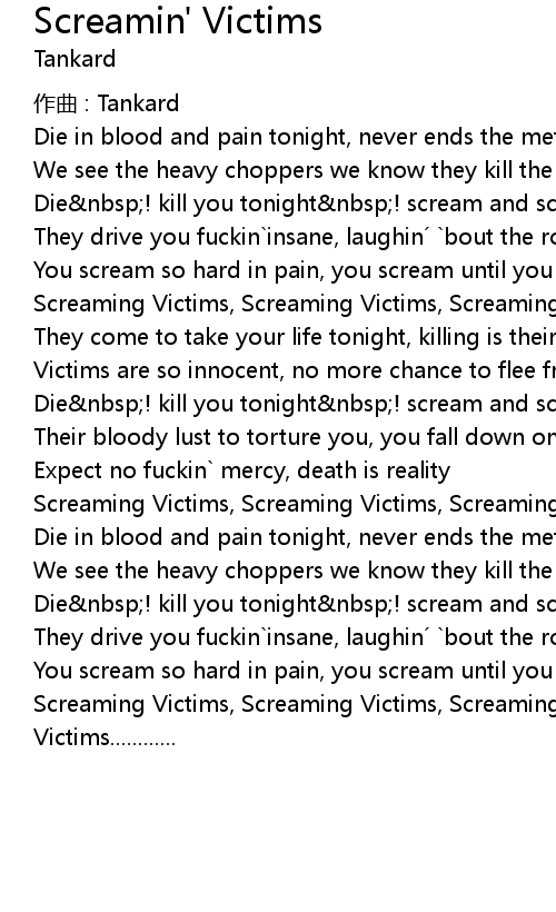 | Screaming Victims, Screaming Victims, Screaming Victims, Screaming Victims............ |