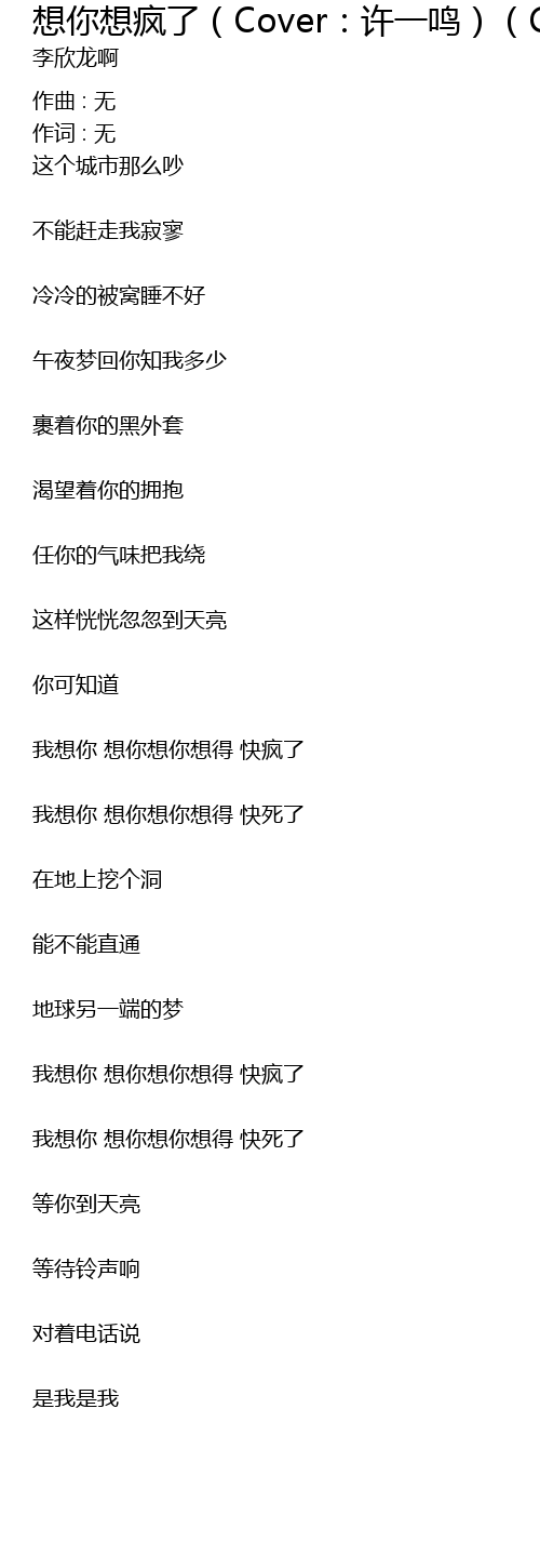 | 我想你 想你想你想得 快疯了 | |