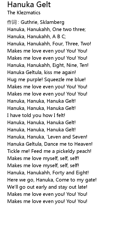 | Hanuka, Hanukahh, One two three; | |