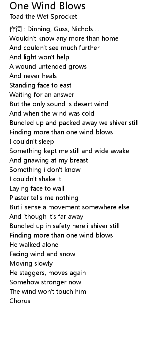 | Song | One Wind Blows |