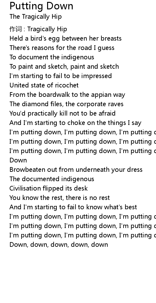 | I' m putting down, I' m putting down, I' m putting down | |