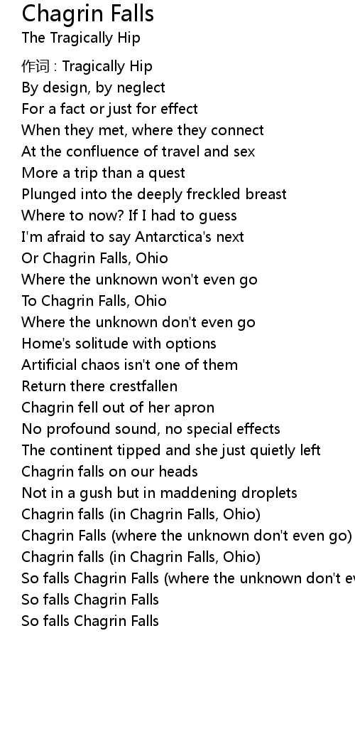 | So falls Chagrin Falls where the unknown don' t even go | |