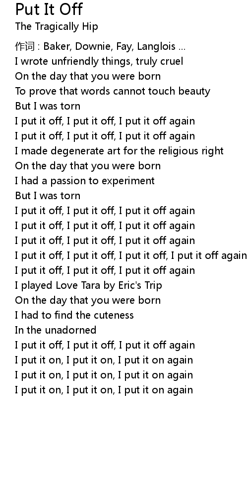 | 作词 : Baker, Downie, Fay, Langlois ... | |