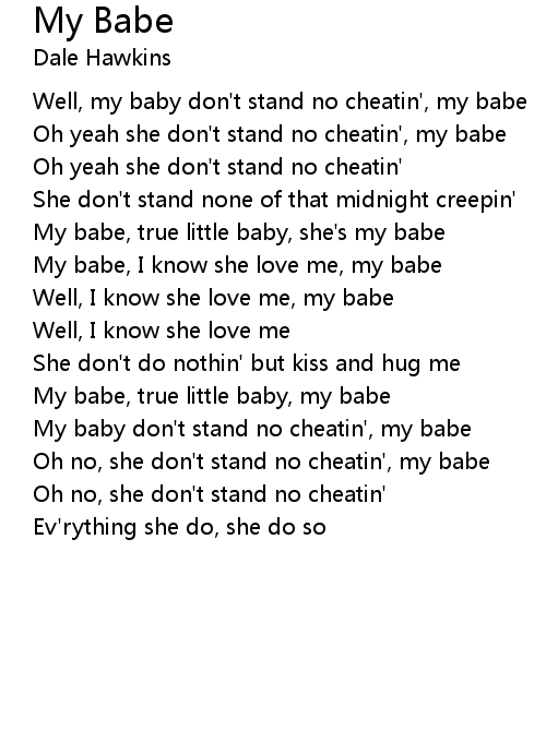 Well, my baby don't stand no cheatin', my babe |