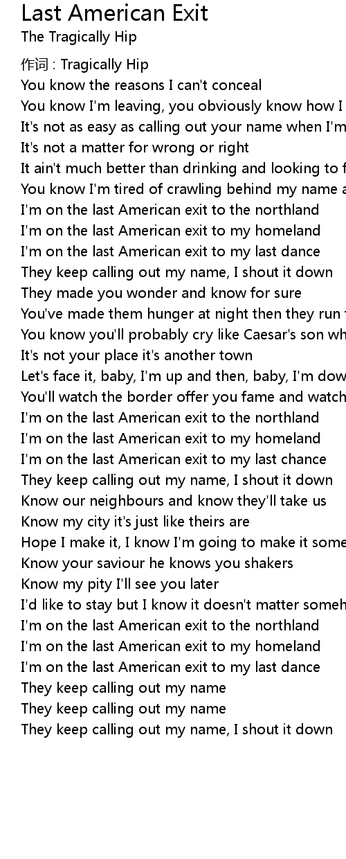 | I' m on the last American exit to my homeland | |