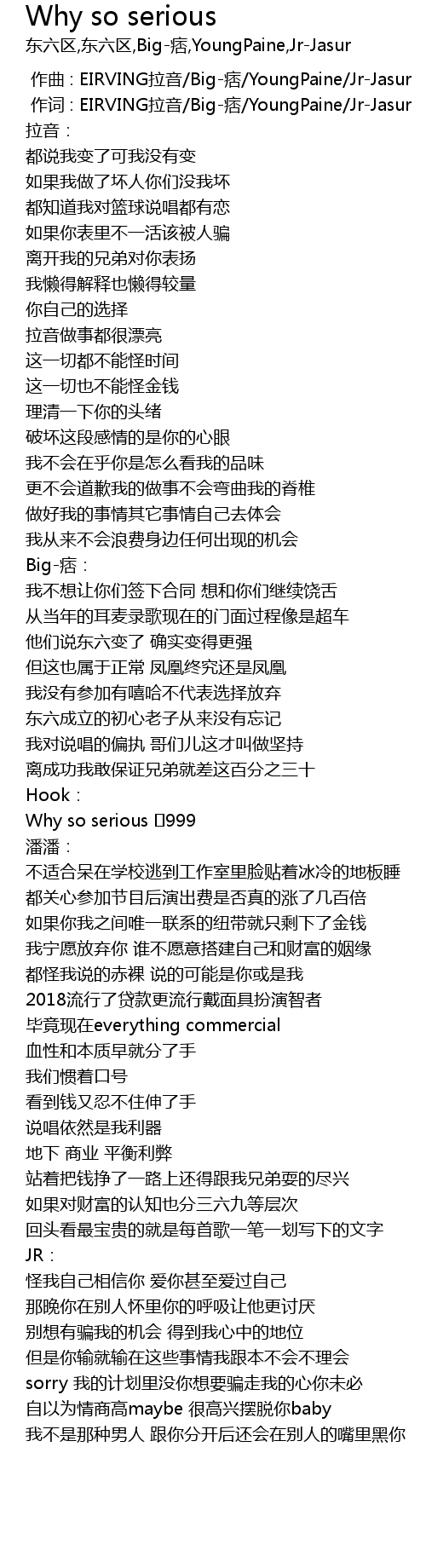 | [00:01.000] | 作词 : EIRVING拉音/Big-痞/YoungPaine/Jr-Jasur |