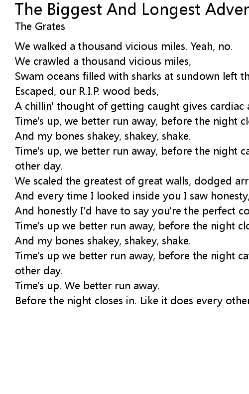 Time's up we better run away, before the night catches us, like it does every other day. |