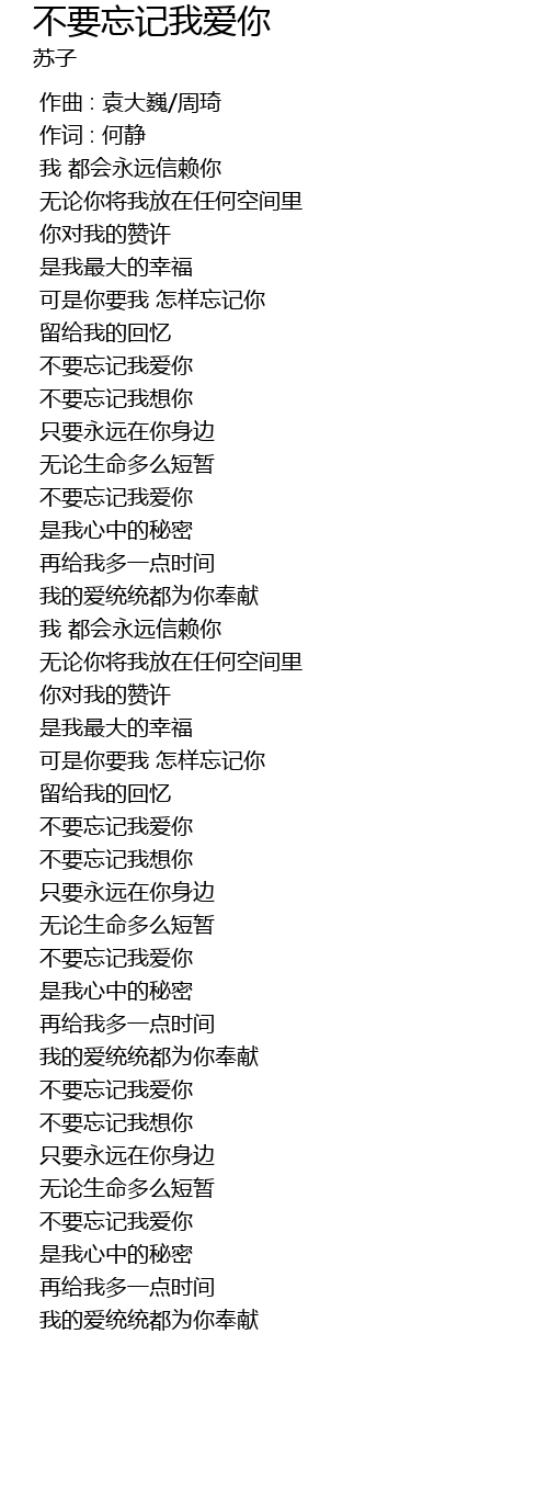 | [00:59.23] | 不要忘记我爱你 |