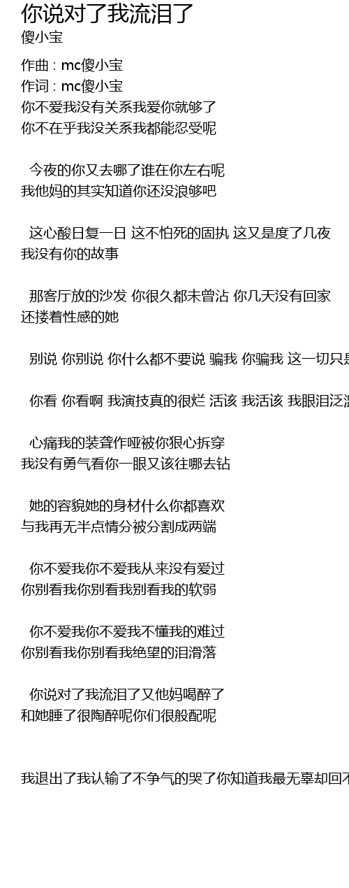 | 你看 你看啊 我演技真的很烂 活该 我活该 我眼泪泛滥成灾 | |