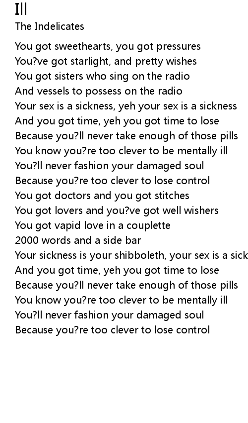 Your sickness is your shibboleth, your sex is a sickness |