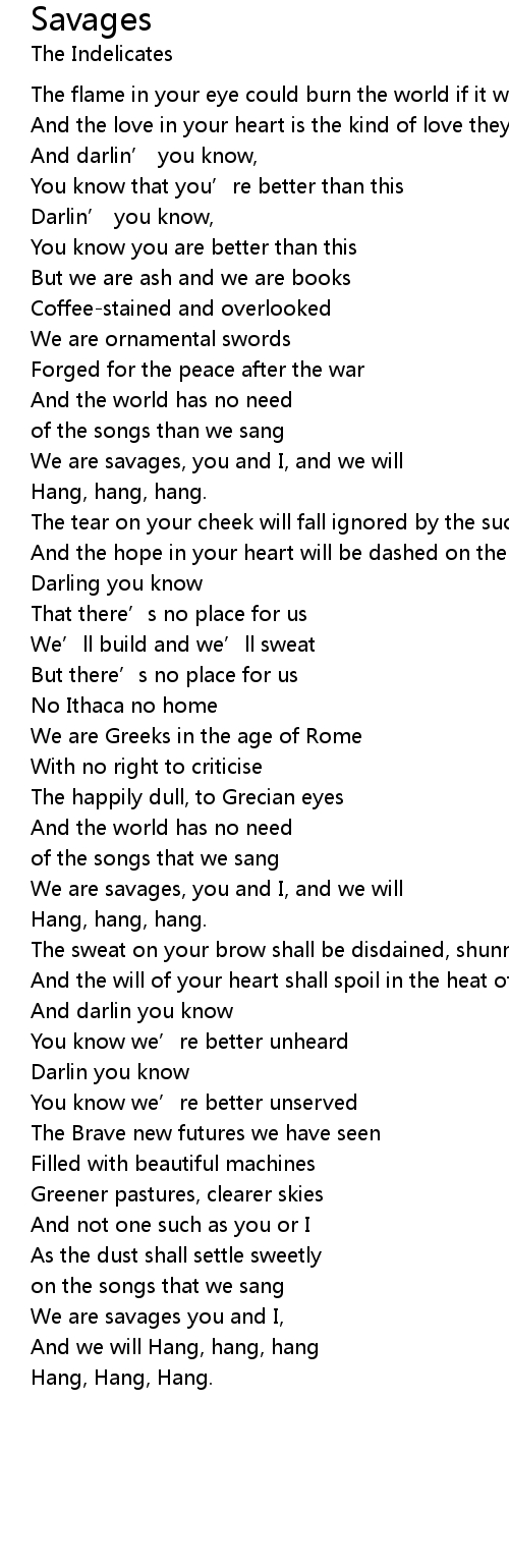 | We are savages you and I, | |