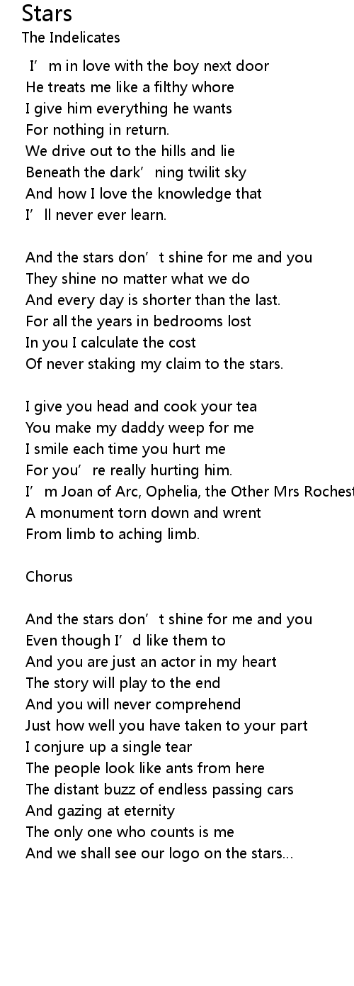 | And the stars don’t shine for me and you | |