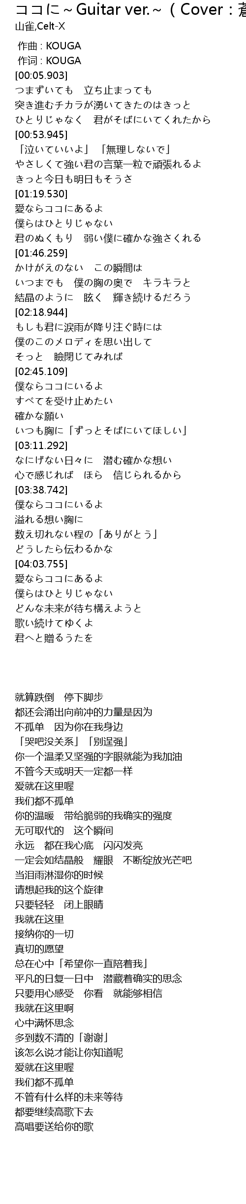 | [00:00.000] | zuò qǔ : KOUGA |