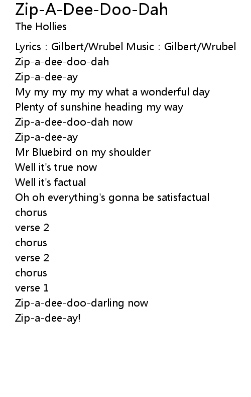 | Zip-a-dee-doo-dah now | |
