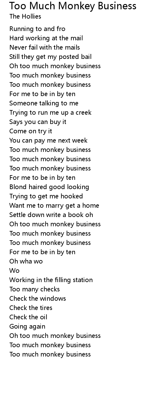 Oh too much monkey business |