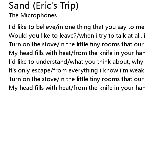 My head fills with heat/from the knife in your hand to my sand |