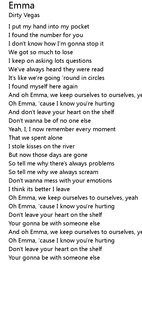 Oh Emma, we keep ourselves to ourselves, yeah |