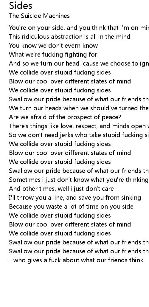 We collide over stupid fucking sides |