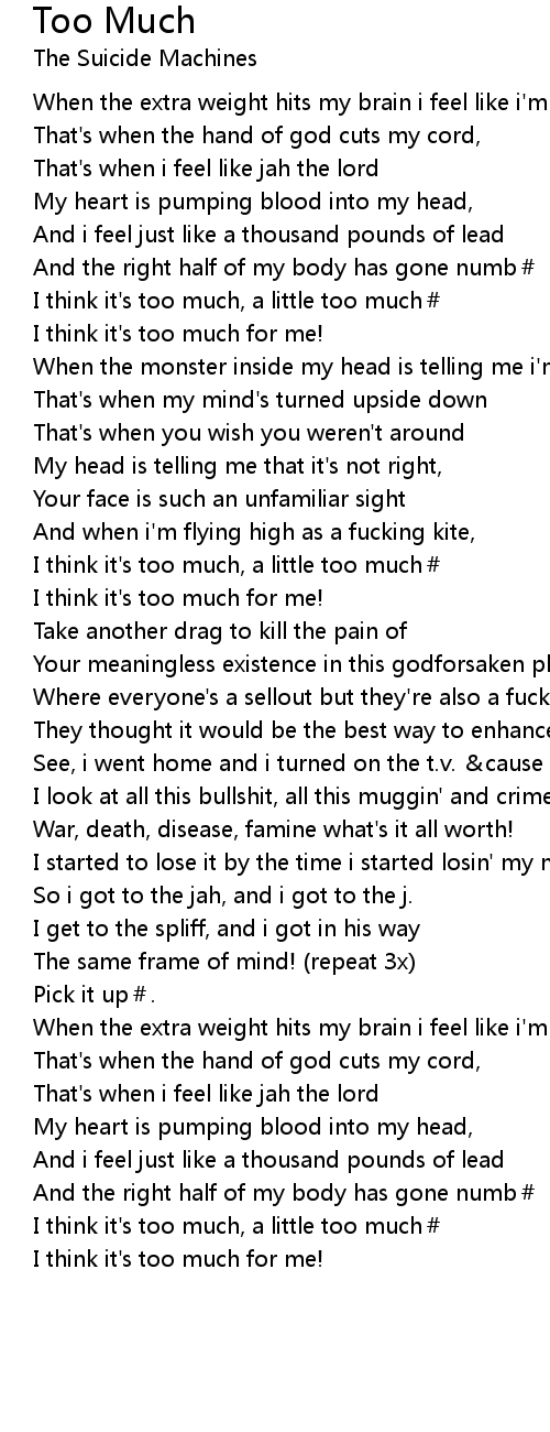 | When the extra weight hits my brain i feel like i'm going insane | |