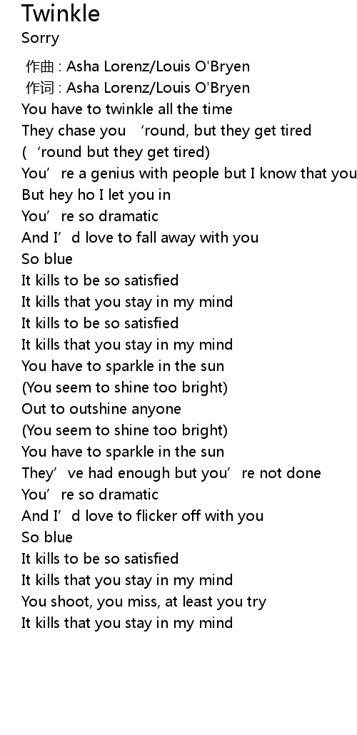 | [00:06.596] | You have to twinkle all the time |