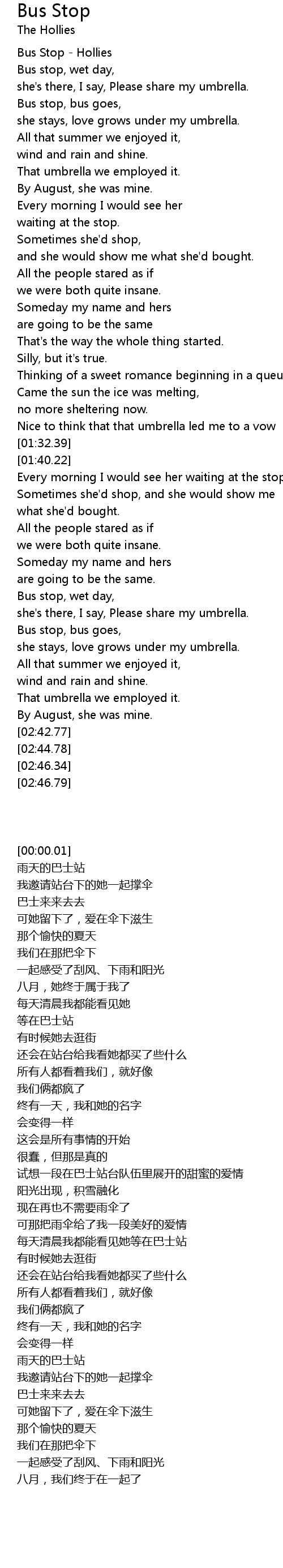 Bus Stop - Hollies |