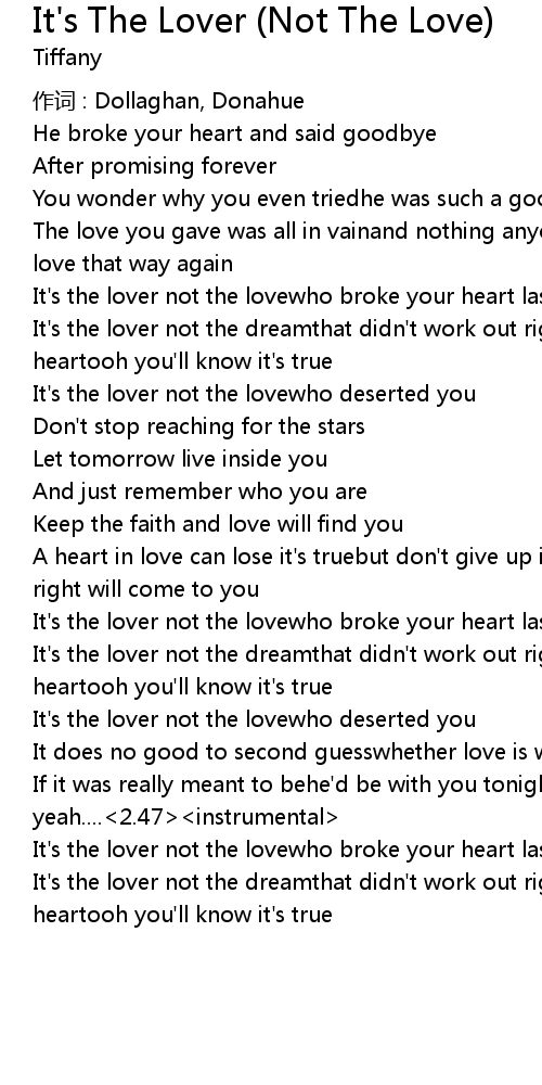 | It' s the lover not the dreamthat didn' t work out rightif you listen to your heartooh you' ll know it' s true | |