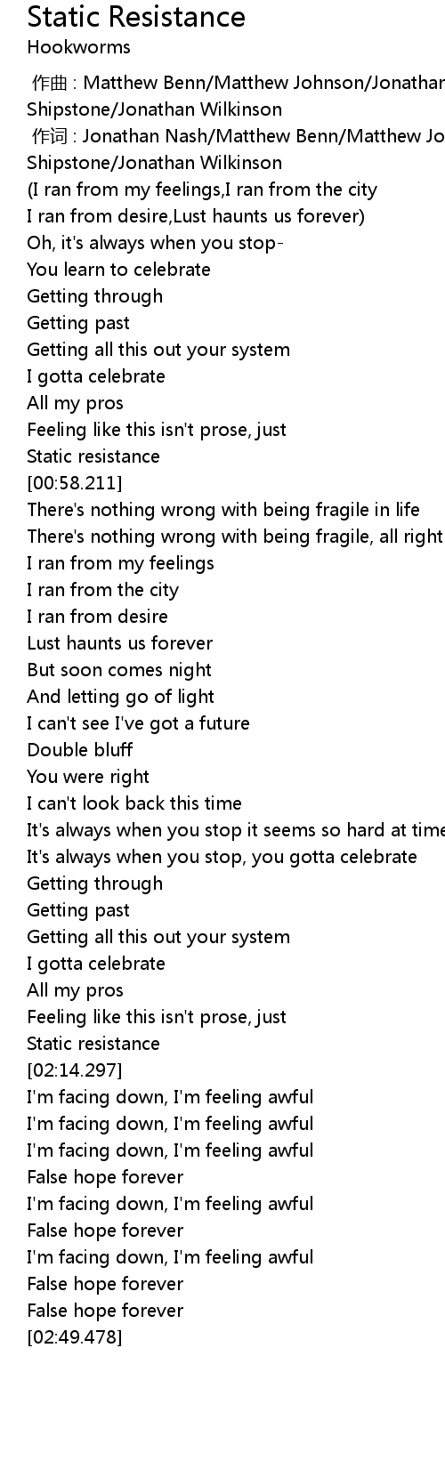 | [00:01.000] | zuò cí : Jonathan Nash Matthew Benn Matthew Johnson Samuel Shipstone Jonathan Wilkinson |