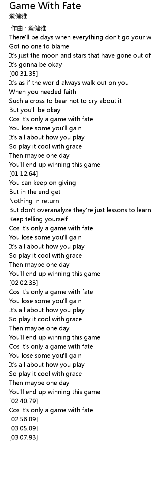 | [02:50.41] | Cos it' s only a game with fate |