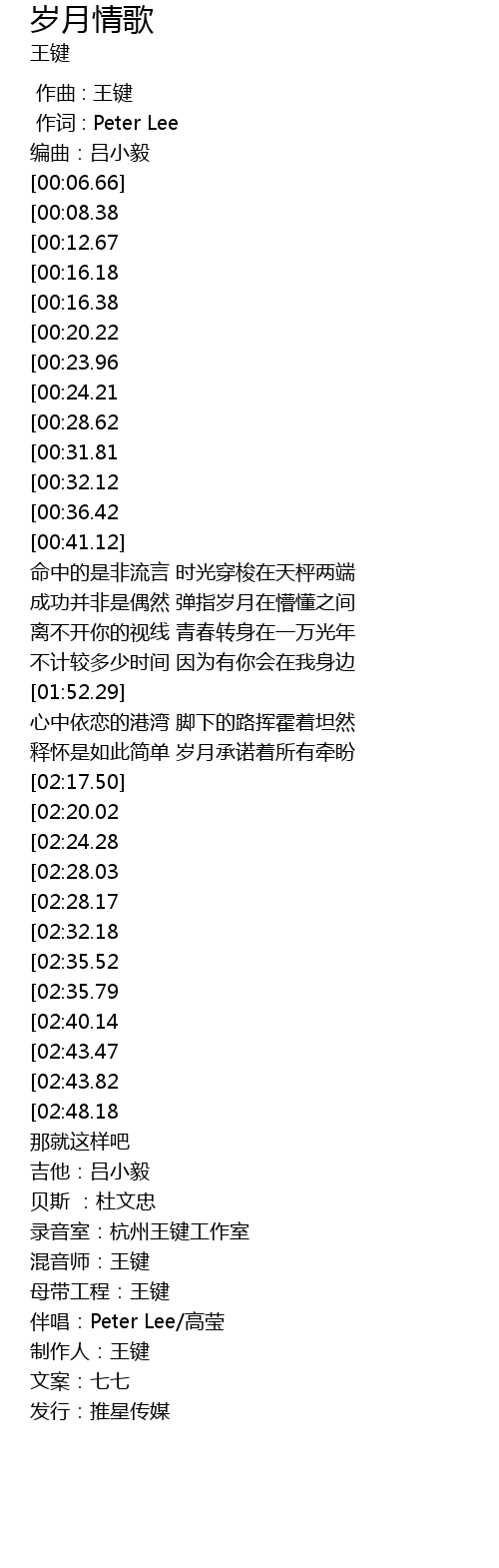 | [03:30.66] | 伴唱:Peter Lee/高莹 |