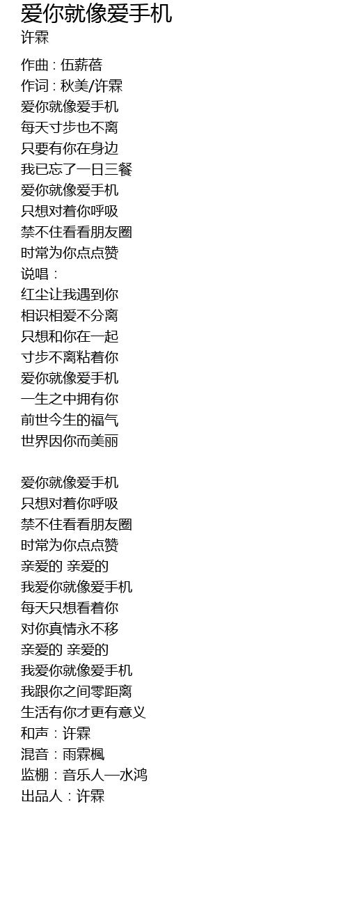 | wǒ ài nǐ jiù xiàng ài shǒu jī | |
