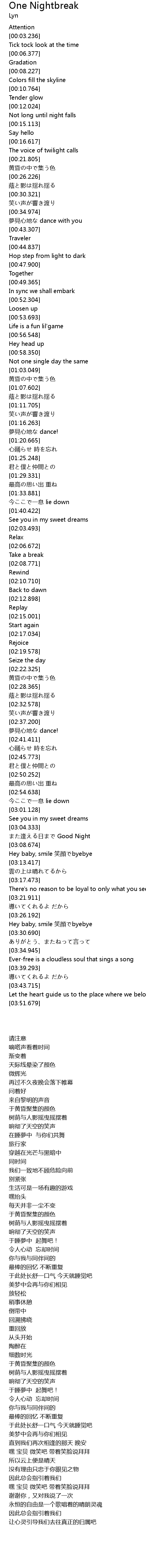 | [03:34.446] | Ever-free is a cloudless soul that sings a song |