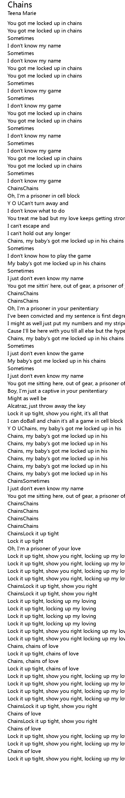 Y O UChains, my baby's got me locked up in his |