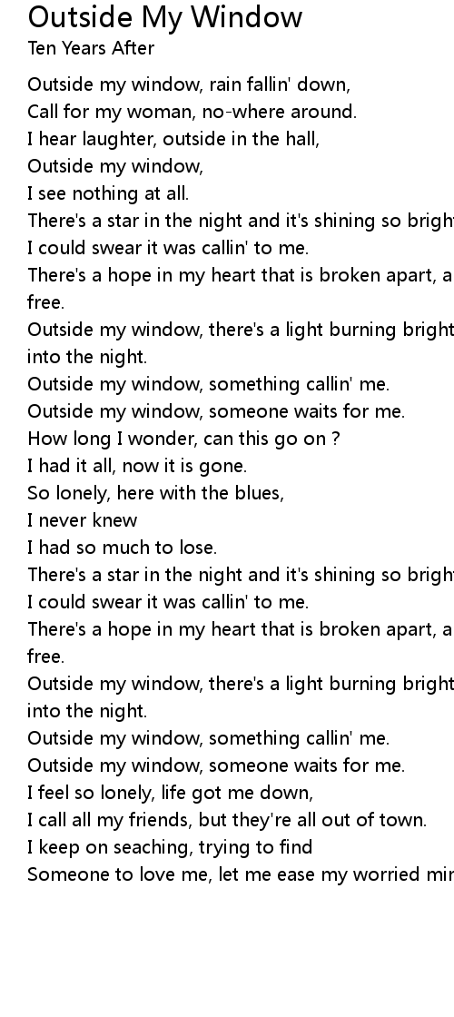Outside my window, there's a light burning bright, and it keeps on callin' me into the night. |