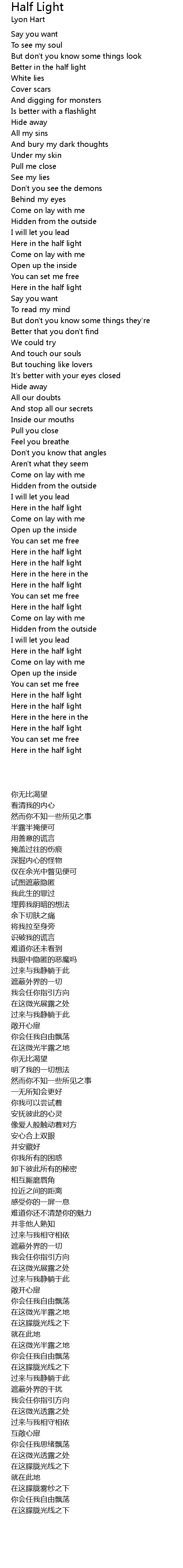 Half Light Lyrics