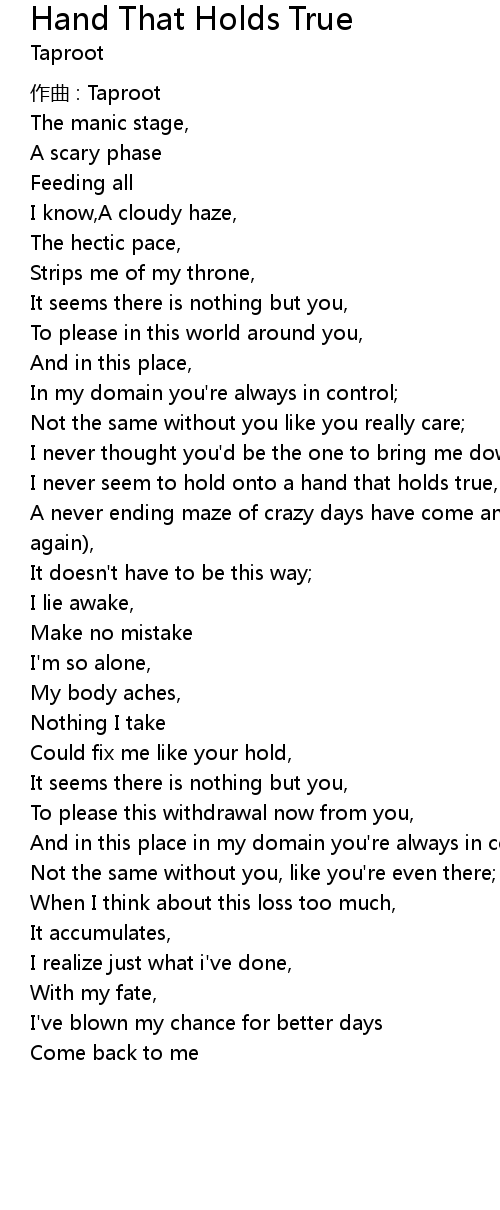 | I never seem to hold onto a hand that holds true, | |