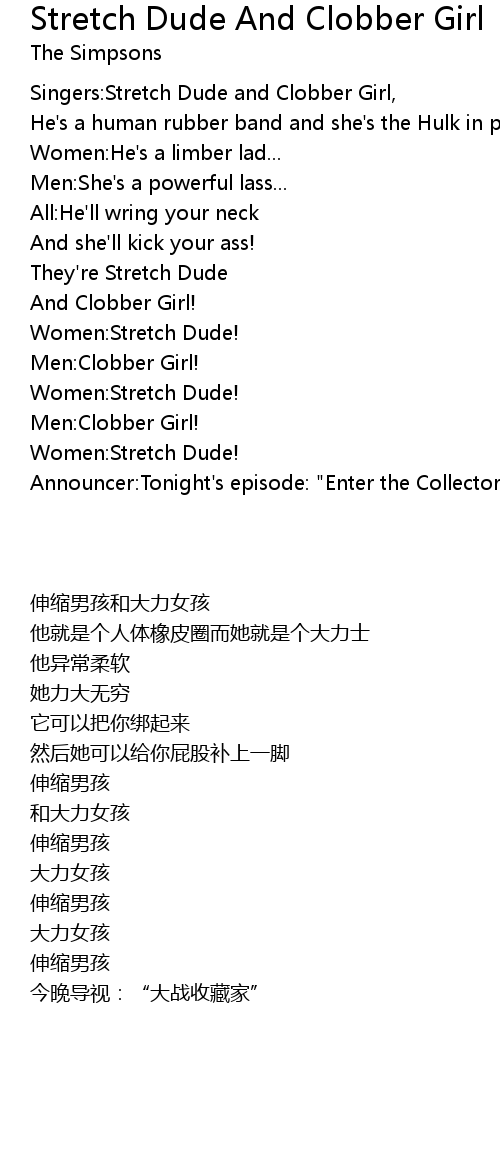 [00:10.92] Singers:Stretch Dude and Clobber Girl,