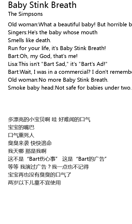 | [00:24.57] | Old woman:No more Baby Stink Breath. |