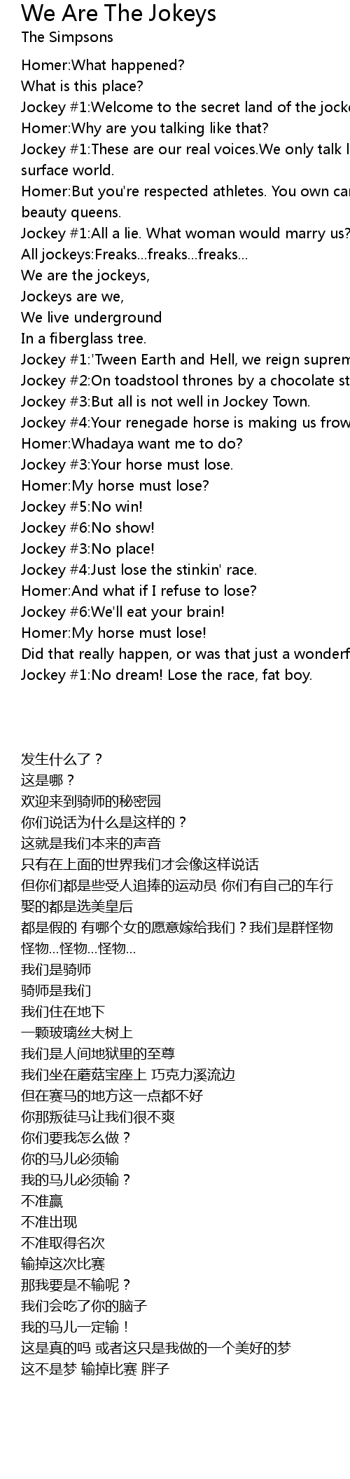 Jockey #1:These are our real voices.We only talk like this on your surface world. |